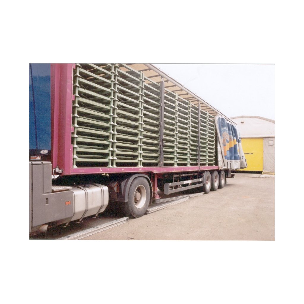 - Úspora prostoru při prázdném stavu díky skládacím bočnicím