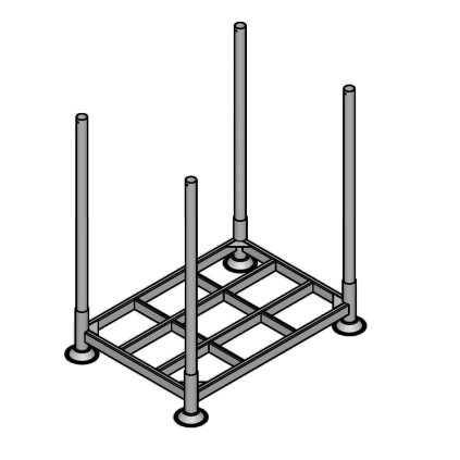 Robustní stohovatelná paleta pro přehledné a bezpečné skladování polotovarů. Stabilní konstrukce a snadná manipulace.